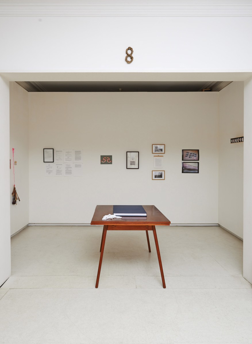 Counting Bone installation shot with Deliah King’s ‘infinity trap for G.B.’, 2015. Primordial clay and egg white glaze. Photo credit: Felicity Jenkins