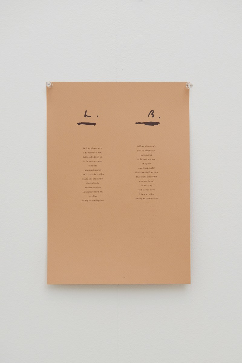 Matthew Hopkins, ‘Stereo Poem (The Writer’s Song)’, 2015, laser jet print and permanent marker on coloured card, 21 x 29.7cm. Photo credit: Felicity Jenkins